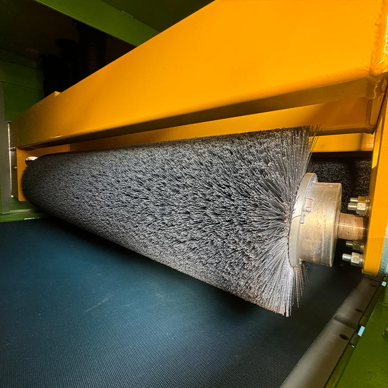 2. Slibebørsteruller: Φ300/350 mm DuPont slibende filamenter, uafhængigt drevne, der understøtter både grove og